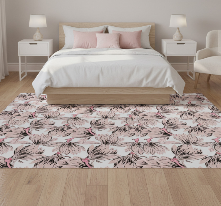 Bedroom vinyl rug with close-up pink and white magnolias
