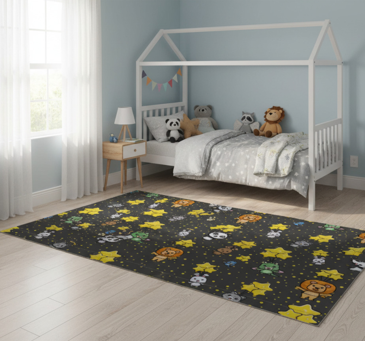 The Bedroom vinyl rug with cute animals on balloons bedroom vinyl rug is an enchanting choice for decorating your child's room! Its vibrant colors and playful design create a cheerful atmosphere, inspiring creativity and joy. Whether it's for playtime or bedtime, this rug serves as a beautiful focal point, sparking imagination and warmth in every corner.