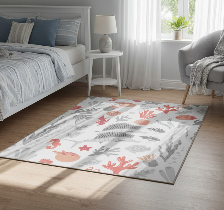 The Bedroom vinyl rug with marine life design bedroom vinyl rug is an inspiring addition to your decor. It effortlessly brings the beauty of the sea indoors, creating a unique focal point in your bedroom. Its enchanting design invites creativity and relaxation, turning your personal space into a tranquil underwater haven that captivates all who enter!