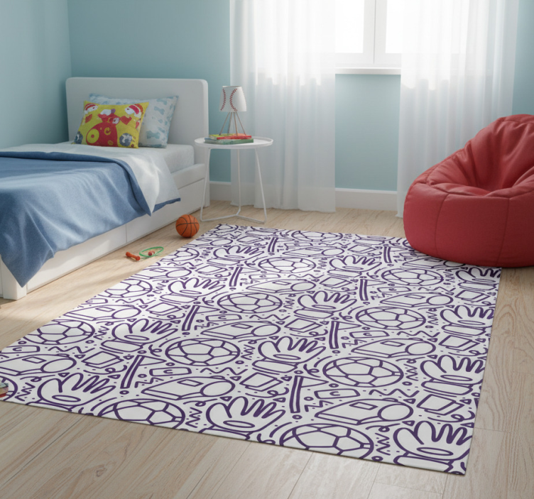 The Bedroom vinyl rug with sports doodle design bedroom vinyl rug is the perfect addition to your home décor! It adds a unique charm that inspires creativity and playfulness, making it an ideal choice for sports enthusiasts and families alike. This rug not only enhances the visual appeal of your bedroom but also creates a welcoming atmosphere that encourages relaxation and fun!