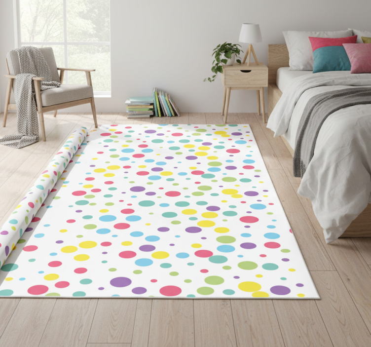 Bedroom vinyl rug with vibrant polka dot design