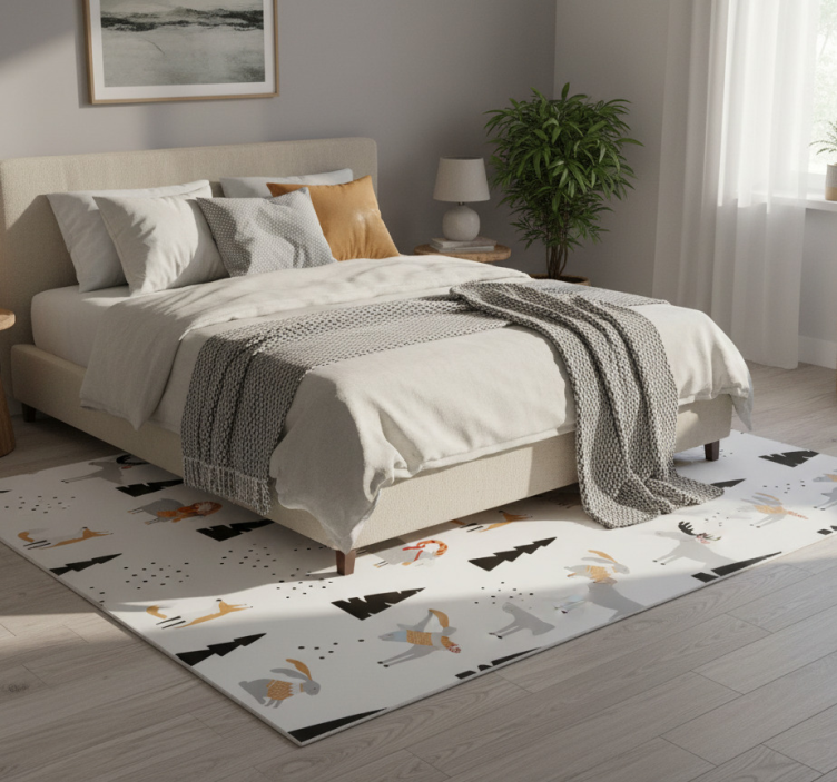 Bedroom vinyl rug with winter animal design