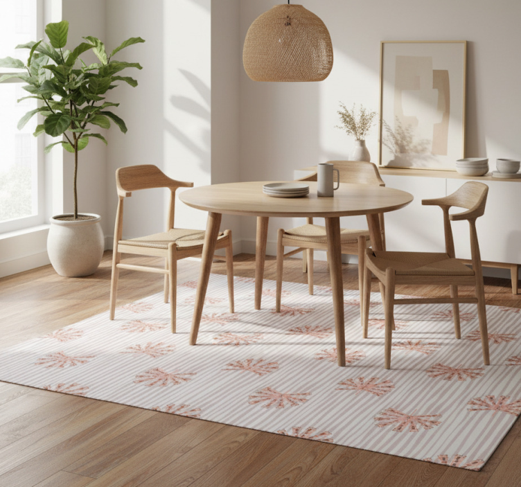 Caring for your Floral vinyl rug in geometric pastel pink flower is a breeze! Simply wipe it down with a damp cloth or mop to keep it looking fresh and vibrant. This easy maintenance ensures that your beautiful rug remains a focal point in your home for years to come.