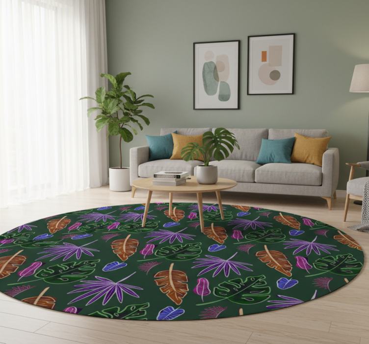 Floral vinyl rug with geometric neon shade