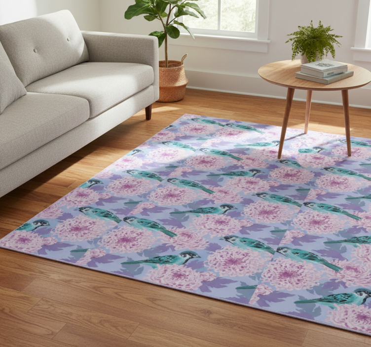 The Floral vinyl rug with pink garden flowers and birds is not just a floor covering; it's a statement of style and elegance! This floral vinyl rug adds a touch of nature's beauty to your home, inspiring warmth and a cheerful ambiance. Perfect for living rooms, bedrooms, or play areas, it effortlessly enhances the aesthetic of any space with its charming design.