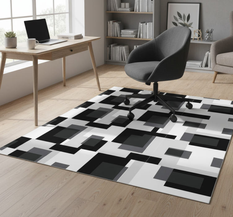 The Geometric vinyl rug in black and white blocks geometric vinyl rug is perfect for adding a touch of style and sophistication to your home. Its striking design draws the eye and complements various decor themes, making it an ideal choice for anyone looking to refresh their space. Imagine how this rug can transform your room into a chic sanctuary filled with personality!