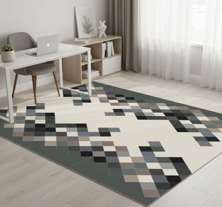 The Geometric vinyl rug in color block shades geometric vinyl rug is the perfect addition to your home decor! Its eye-catching design elevates any space, making it ideal for living rooms, bedrooms, or play areas. The vibrant colors and sleek geometric patterns inspire creativity and joy, encouraging an inviting atmosphere where friends and family can gather. Whether you are looking to make a bold statement or add a subtle touch of style, this rug effortlessly enhances your interior decor.