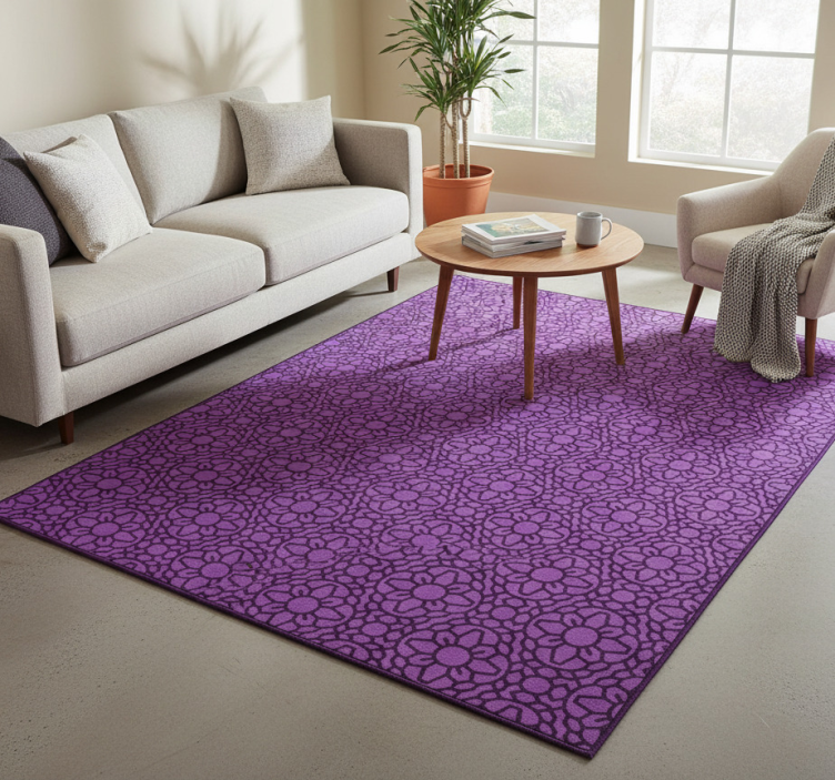 Reference: R21610Transform your space with our stunning Geometric vinyl rug with purple circle flowers. This stylish decoration showcases a vibrant design featuring mesmerizing purple circle flowers set against a chic geometric backdrop, creating an eye-catching focal point that enhances any room’s aesthetic. With its easy-to-clean surface, anti-slip properties, and scratch-resistant material, this rug is perfect for busy households looking to blend functionality with artistry!