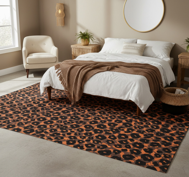 Caring for your Kalahari leopard imitation animal print vinyl rug is easy! Simply wipe it down with a damp cloth or mop for quick clean-ups. Its durable surface ensures that it remains beautiful and vibrant even with regular use.