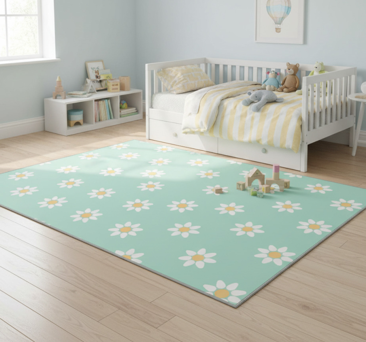 Kids daisy pattern bedroom vinyl rug