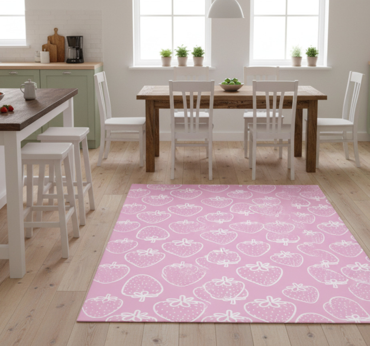 Reference: R21280Transform your kitchen with our stunning Kitchen vinyl rug seamless pink strawberry pattern! This delightful design features a vibrant pink backdrop adorned with charming strawberry motifs, creating a cheerful atmosphere in any culinary space. Easy to clean, anti-slip, and scratch resistant, this rug not only enhances the aesthetic but also provides practical benefits, ensuring your floor is protected while adding a touch of whimsy!