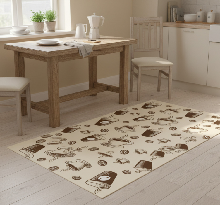 The Kitchen vinyl rug with a great coffee mug pattern kitchen vinyl rug is more than just a decorative piece; it's a statement of your love for coffee and a cozy home. Imagine stepping into your kitchen and being greeted by the cheerful designs that inspire warmth and comfort. This rug not only elevates your kitchen aesthetics but also protects your floors from spills and scratches, making it an essential addition to your home!