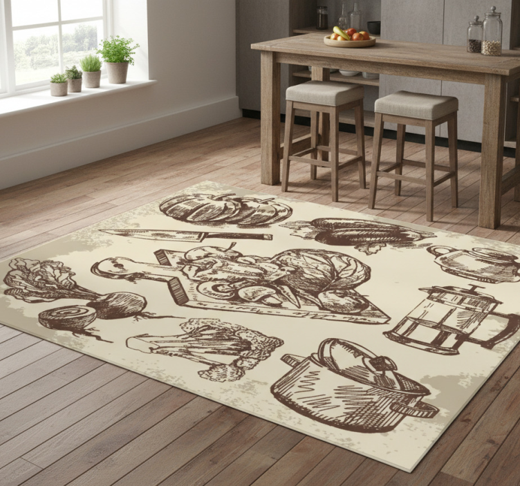 Reference: R21173Transform your kitchen into a haven of style with our Vintage illustration kitchen vinyl rug! Designed with stunning vintage illustrations, this kitchen rug combines artistic flair with functionality. Its vibrant colors and intricate designs will breathe life into your space while providing comfort underfoot. Perfect for those who appreciate both aesthetics and practicality, this rug is an essential addition to any home.