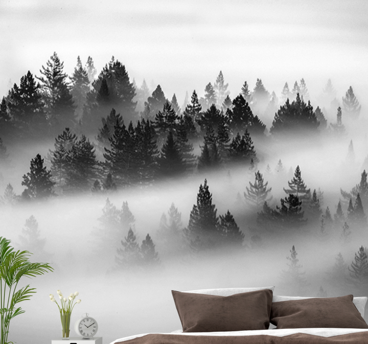 - Foggy black forest photomural for bathroom