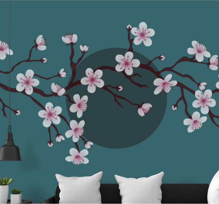 Transform your space with the enchanting Flower wall mural blossoming cherry branch, a stunning visual representation of cherry blossoms adorning a delicate branch. This beautiful design captures the essence of nature with its intricate illustration of cherry flowers, bringing an Asian-inspired elegance to your home. The natural elements of this mural create a serene atmosphere, perfect for any room that needs a touch of tranquility!