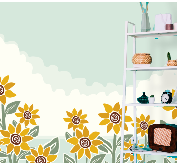 Transform your space with our stunning Flower wall mural sunflower garden scene. This enchanting design features a vibrant array of sunflowers nestled amidst lush greenery and a picturesque landscape. The beautiful illustration captures the essence of nature, evoking feelings of warmth and serenity. It’s more than just a mural; it’s a breathtaking escape into a sunflower garden that brightens any room!