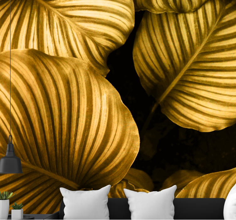 Transform your space with our stunning Flower wall mural with golden leaf patterns, where nature meets elegance. This beautiful design features intricate leaf and leaves motifs that evoke a tropical paradise, enhanced with luxurious golden accents. The textured appearance gives depth and warmth, making it a perfect choice for those who appreciate the beauty of nature in their decor!