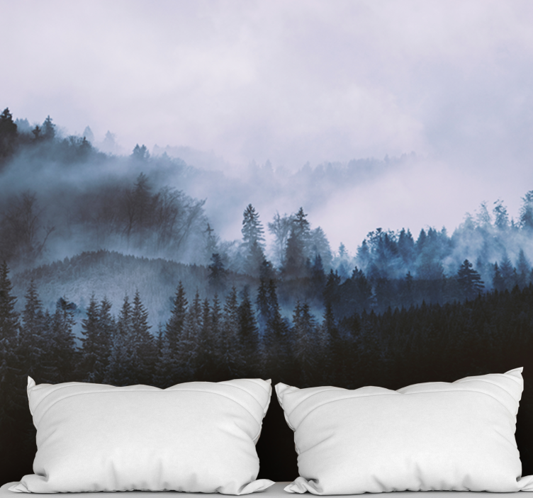 Transform your space into a serene escape with our Forest wall mural misty evergreen landscape. This stunning design captures the ethereal beauty of towering trees, majestic mountains, and the gentle embrace of fog. The lush pines create a captivating backdrop that brings the tranquility of nature into your home, making each glance a moment of peace and wonder!