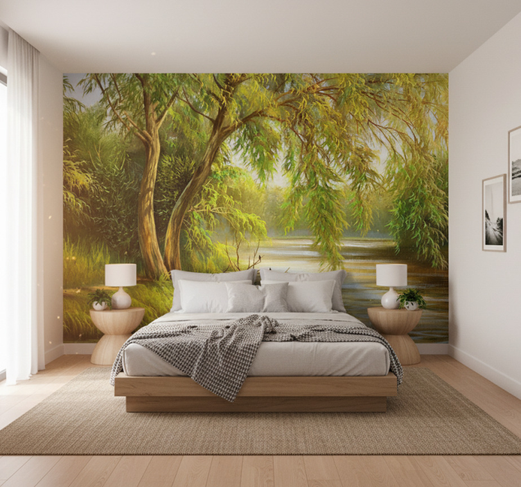 The Forest wall mural serene river willow forest wall mural is not just a decoration; it’s a statement piece that can elevate your interior design. Its calming visuals inspire relaxation and peace, making it perfect for living rooms, bedrooms, or even meditation spaces. Surround yourself with nature's beauty and let the soothing imagery of flowing water and lush greenery rejuvenate your home!