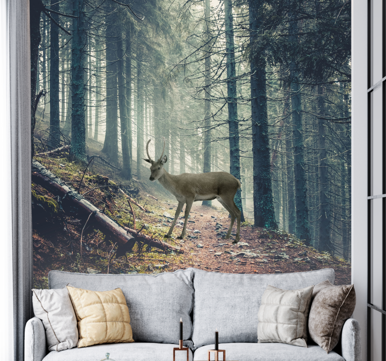 Transform your living space with the enchanting Forest wall mural stag in woodland. This stunning design captures the serene beauty of a deer gracefully wandering along a winding path surrounded by majestic trees and vibrant wildlife. The harmonious blend of nature and artistry brings the tranquility of the forest right into your home, creating a peaceful retreat that invites you to escape the hustle and bustle of everyday life.