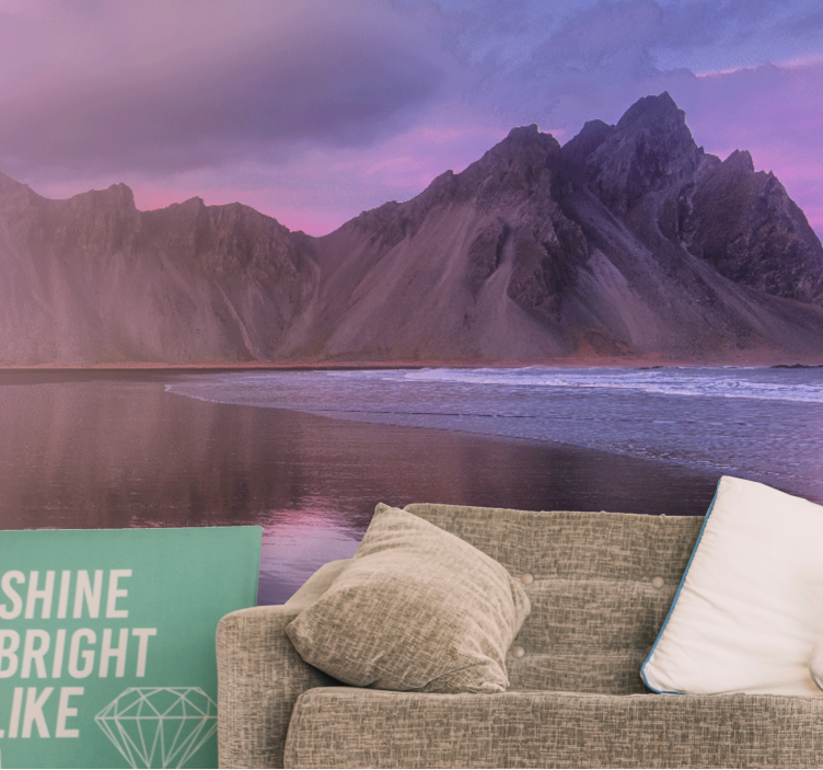 Transform your space with our stunning Landscape wall mural majestic mountain vista. This breathtaking design captures the essence of nature with its majestic mountains, serene sand, and picturesque ocean reflections. The captivating photography creates a tranquil atmosphere, inviting you to immerse yourself in the beauty of the landscape.