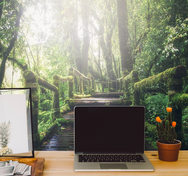 Transform your space with our stunning Wall mural nature lush woodland path. This beautifully crafted design features a captivating pathway that meanders through a serene forest, where majestic trees stand tall, bathed in warm sunlight. The enchanting photography captures the essence of nature with vibrant moss and ethereal light filtering through the foliage, creating a tranquil atmosphere that invites you to explore the great outdoors from the comfort of your home!