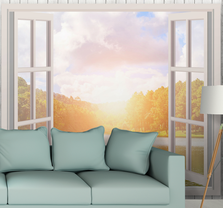 Reference: F5619Improve Your Walls with Window Sun Light on Lake Carp 3D Mural Wallpaper