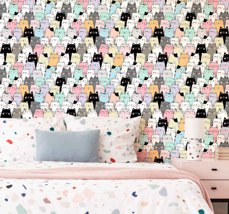 Introducing our Cats Kids wallpaper, featuring a delightful design that combines cats, animals, doodles, and vibrant colors. This non-woven wallpaper is manufactured in matt colors, ensuring a stylish and modern look for any space. Its versatility makes it an ideal choice for decorating children's rooms, nurseries, or play areas. Transform any dull wall into a whimsical and imaginative space that will captivate your child's imagination!How to apply this product