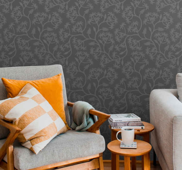 Immerse yourself in elegance with our Subtle floral pattern leaves wallpaper, featuring a classic design that beautifully intertwines grey branches with a delicate floral pattern. This ornamental masterpiece adds a touch of sophistication and tranquility to any room, making it the perfect choice for those who appreciate timeless decor!